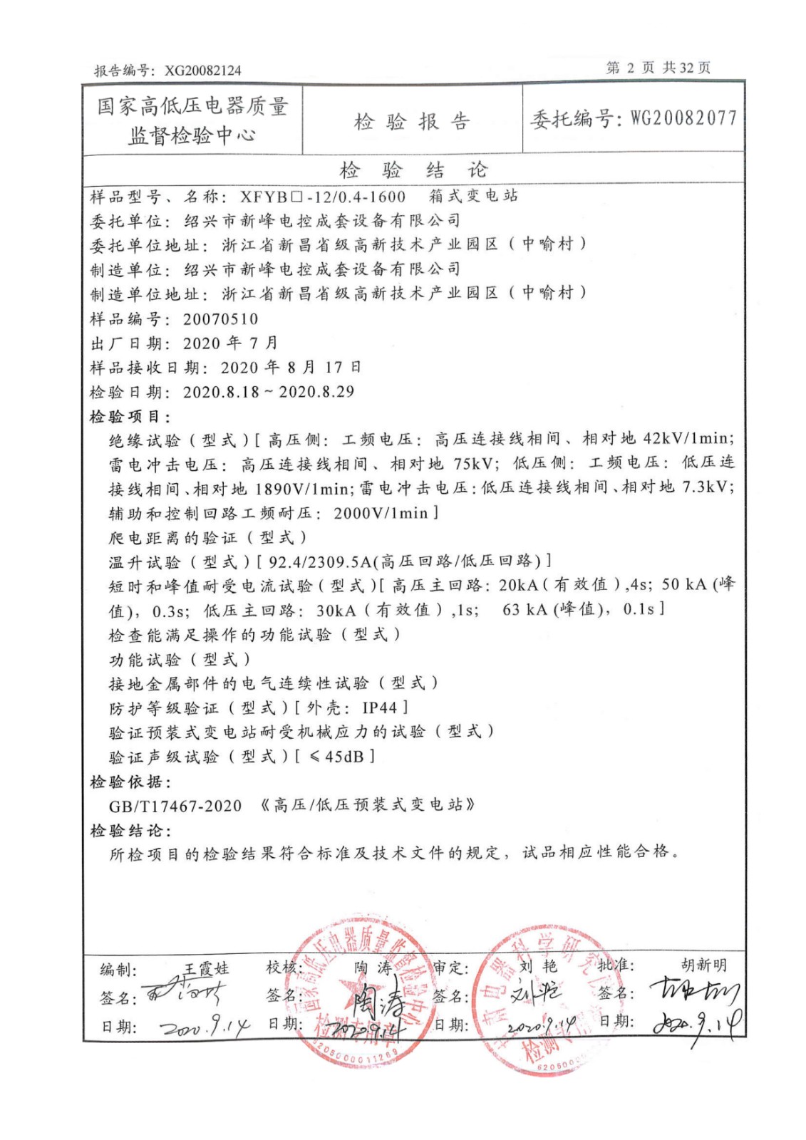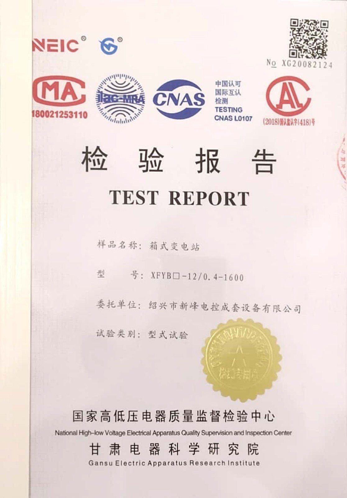 箱變XFYB-12/0.4-1600-高壓設(shè)備檢測報(bào)告